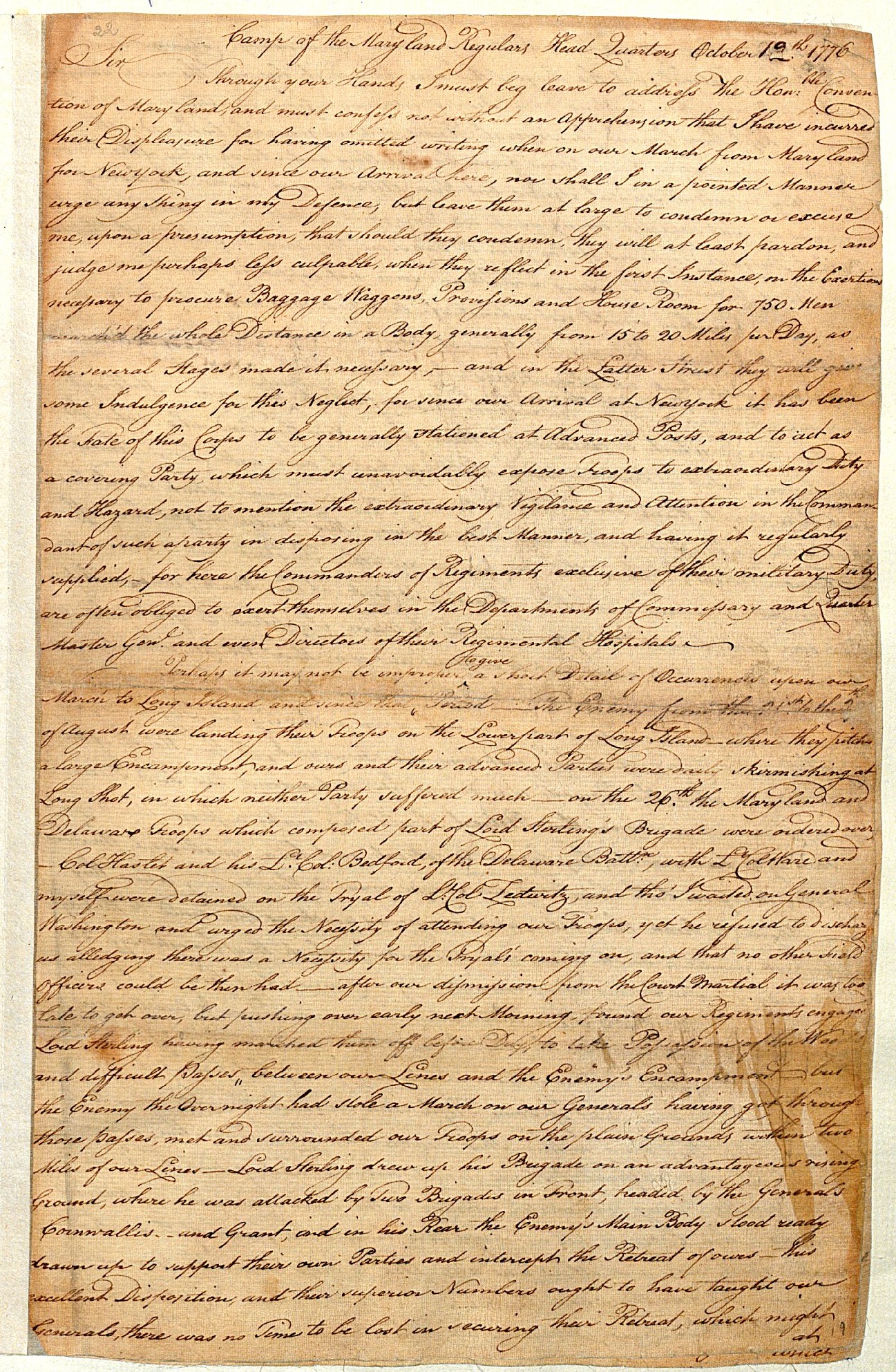 [1] MARYLAND STATE PAPERS (Red Books) Colonel William Smallwood to Maryland Council of Safety, 12 October 1776, vol. 4, no. 19B, MdHR 4561 [MSA S989-5, 1/6/3/38].