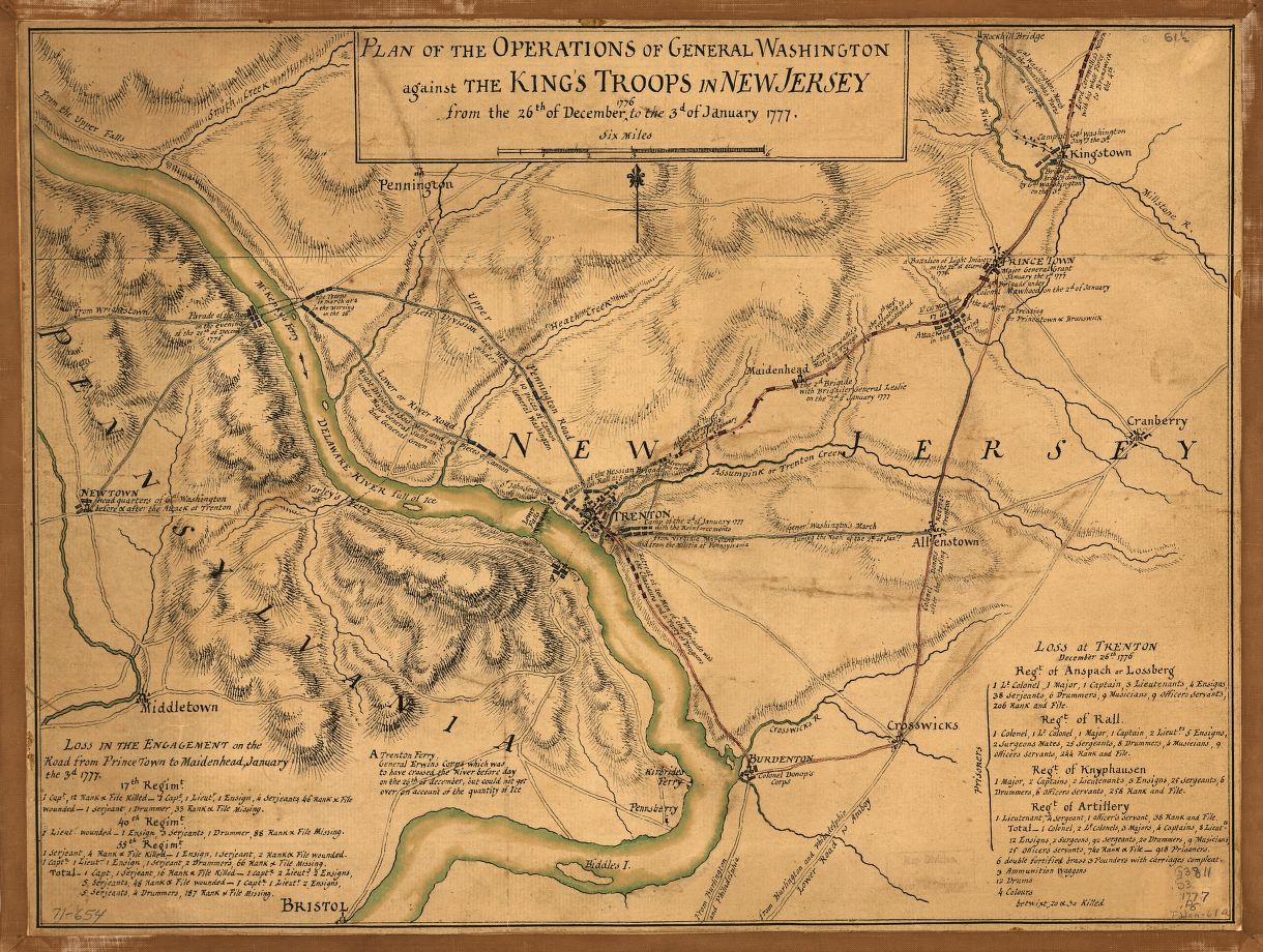 Plan of the operations of General Washington against the King’s troops in New Jersey, 1777, Image from Library of Congress Geography and Map Division.